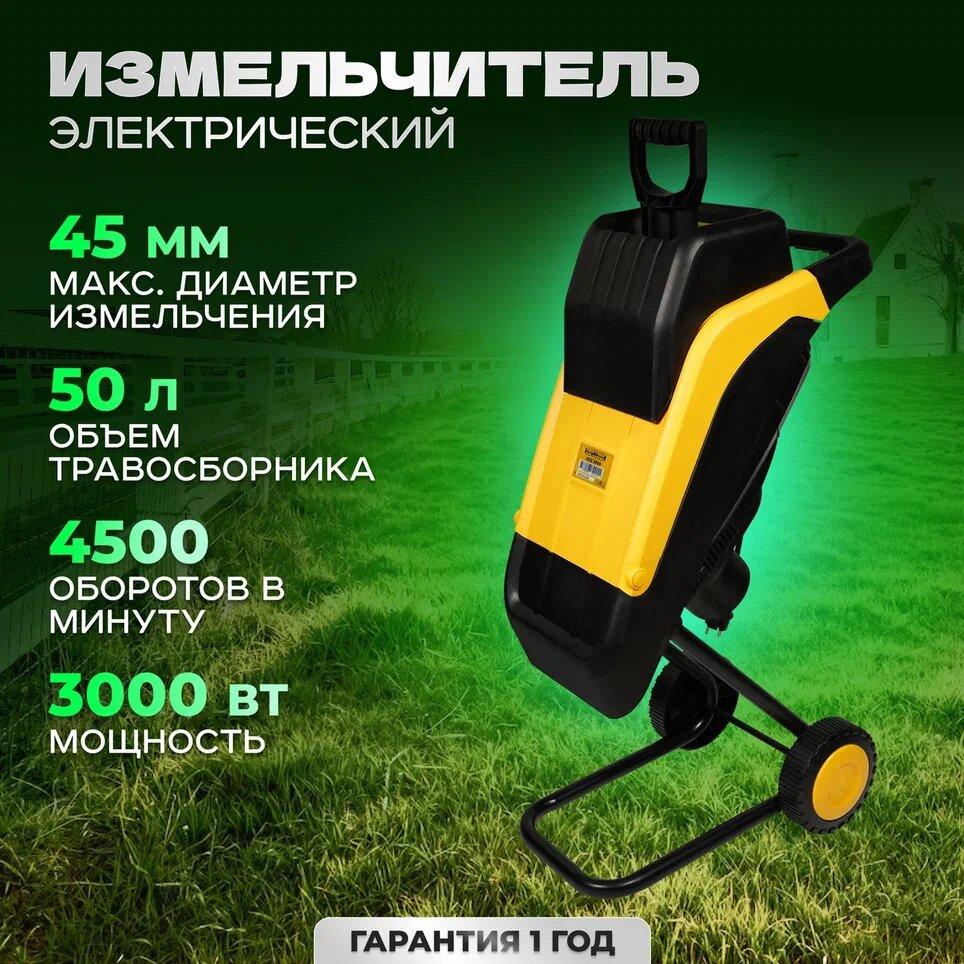 Садовый измельчитель электрический / Садовый измельчитель для веток / шредер Partner for garden EGS 3000 ( 3000 Вт, 45 мм, 4500 об мин, мешок 50 литров ) интересное: