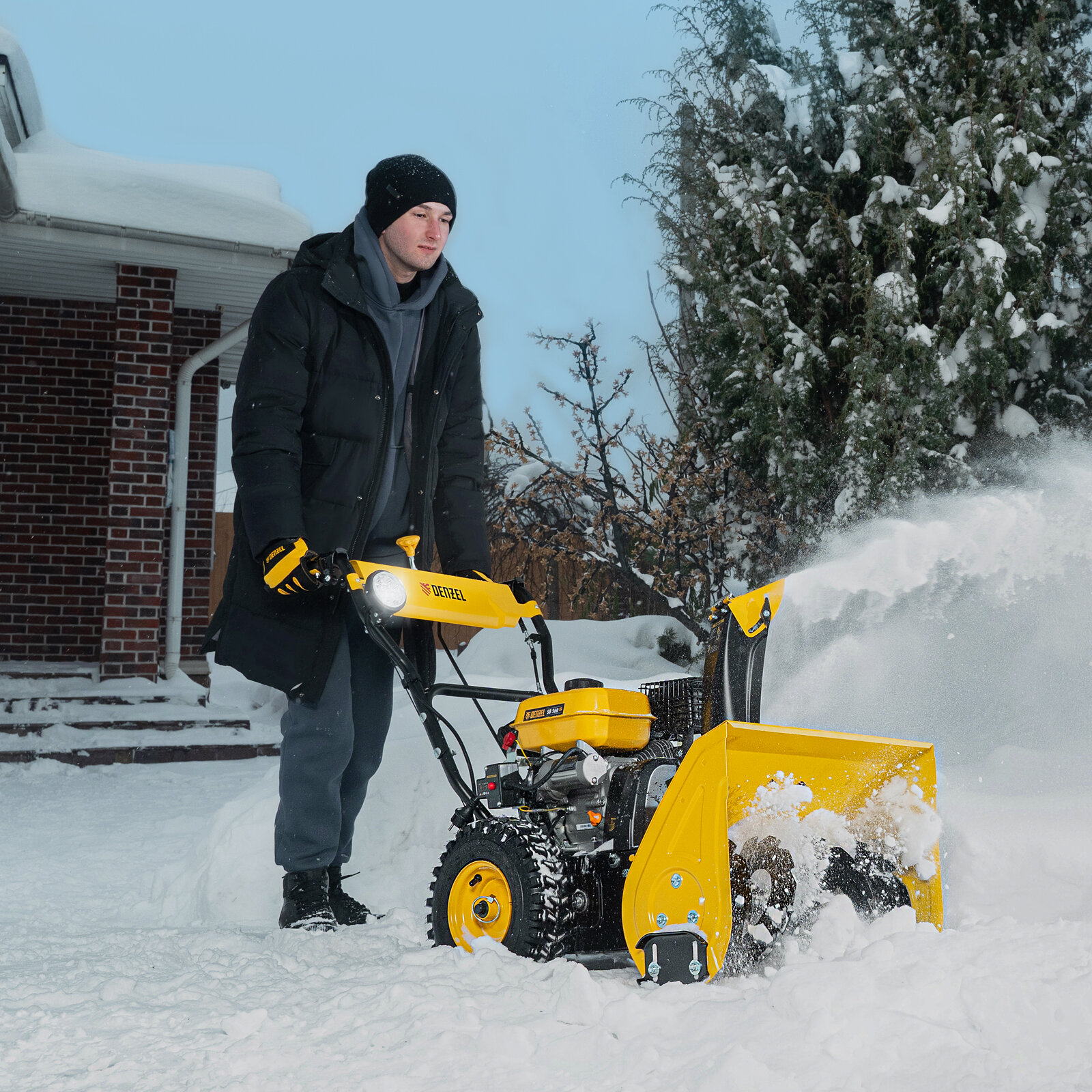 Бензиновая снегоуборочная машина SB 560 LP, 212 cc, электростартер, фара Denzel