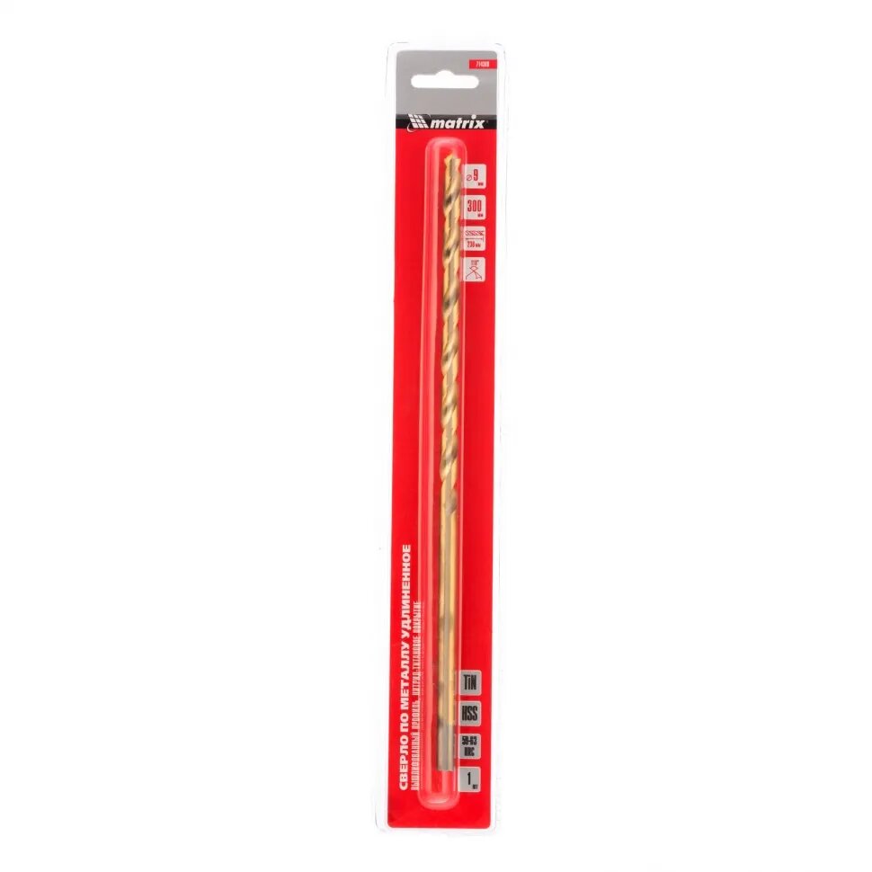 Купить Сверло спиральное по металлу Matrix 9 x 300мм HSS, нитридтитановое покрытие 714309