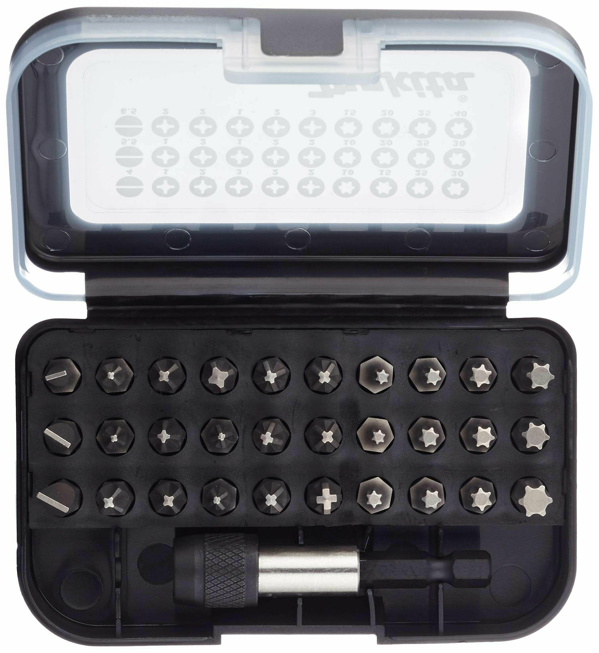 | Плюсы: | Хорошая стааль и грамотно подобранная комплектация. Самых ходовых бит - PH2 и PZ2 - аж по 4 штуки. |