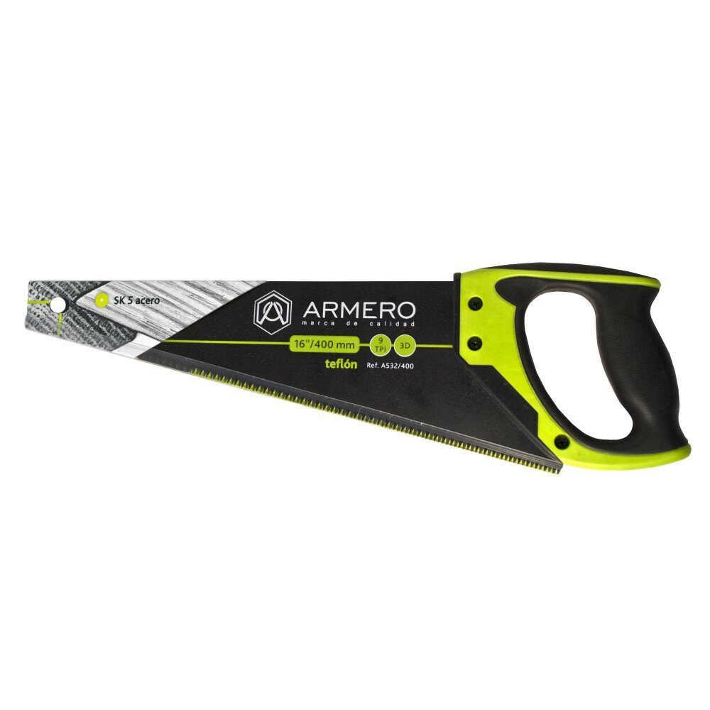 Ножовка по дереву ARMERO 400 мм 3d заточка средний зуб 9 TPI Teflon