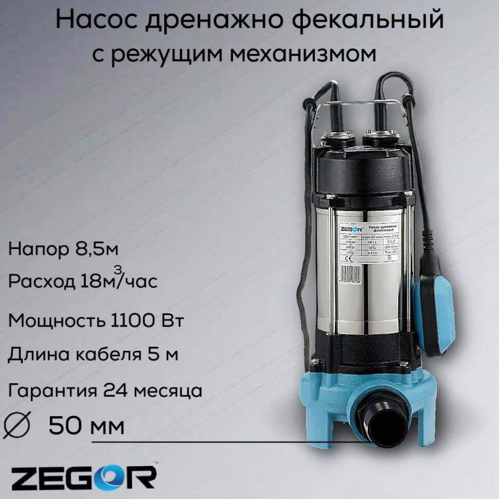 Насос фекальный WQV1100DF ZEGOR с режущим механизмом интересное: