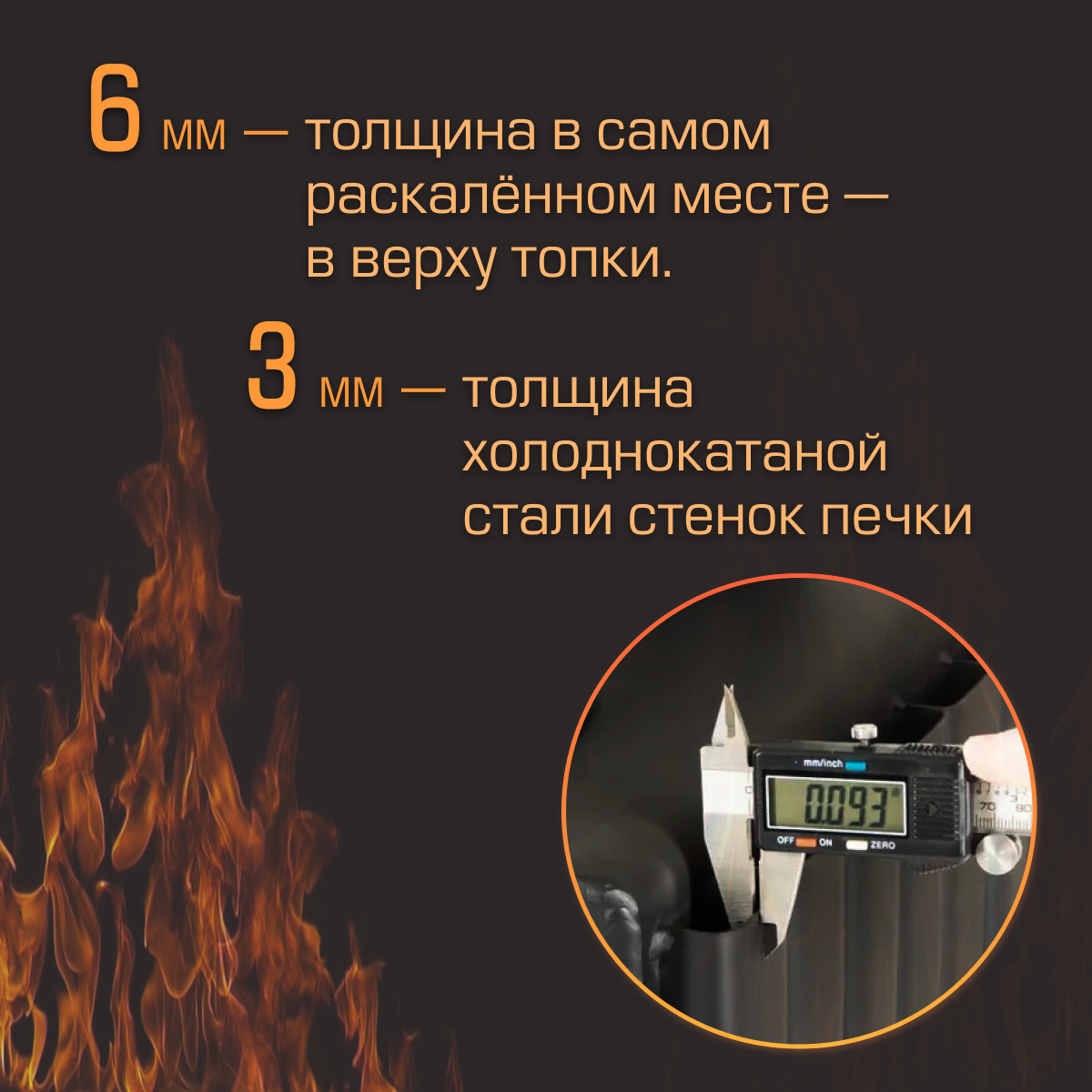 | Плюсы: | Толстые стенки - 4 мм. Верх - 8 мм. Толстостенная небольшая печка! |