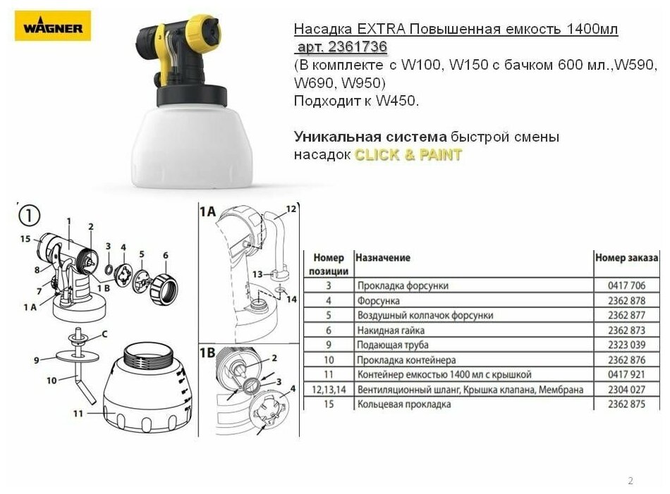 Насадка для краскопульта WAGNER Extra повышенная емкость 1,4 л интересное: