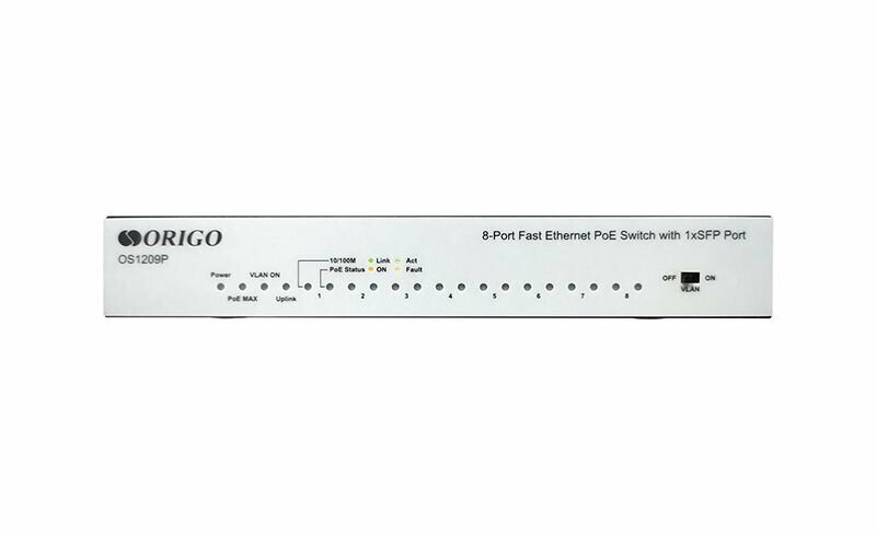 ORIGO OS1209P/80W/A1A Неуправляемый PoE-коммутатор 8x100Base-TX PoE+, 1x1000Base-X SFP, PoE-бюджет 80 Вт, корпус металл