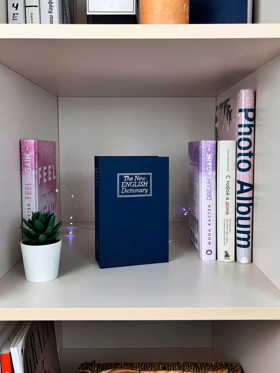 Механический сейф-книга (шкатулка) "BookSafe", маскированный замок, для денег и документов, в дом или офис, синий