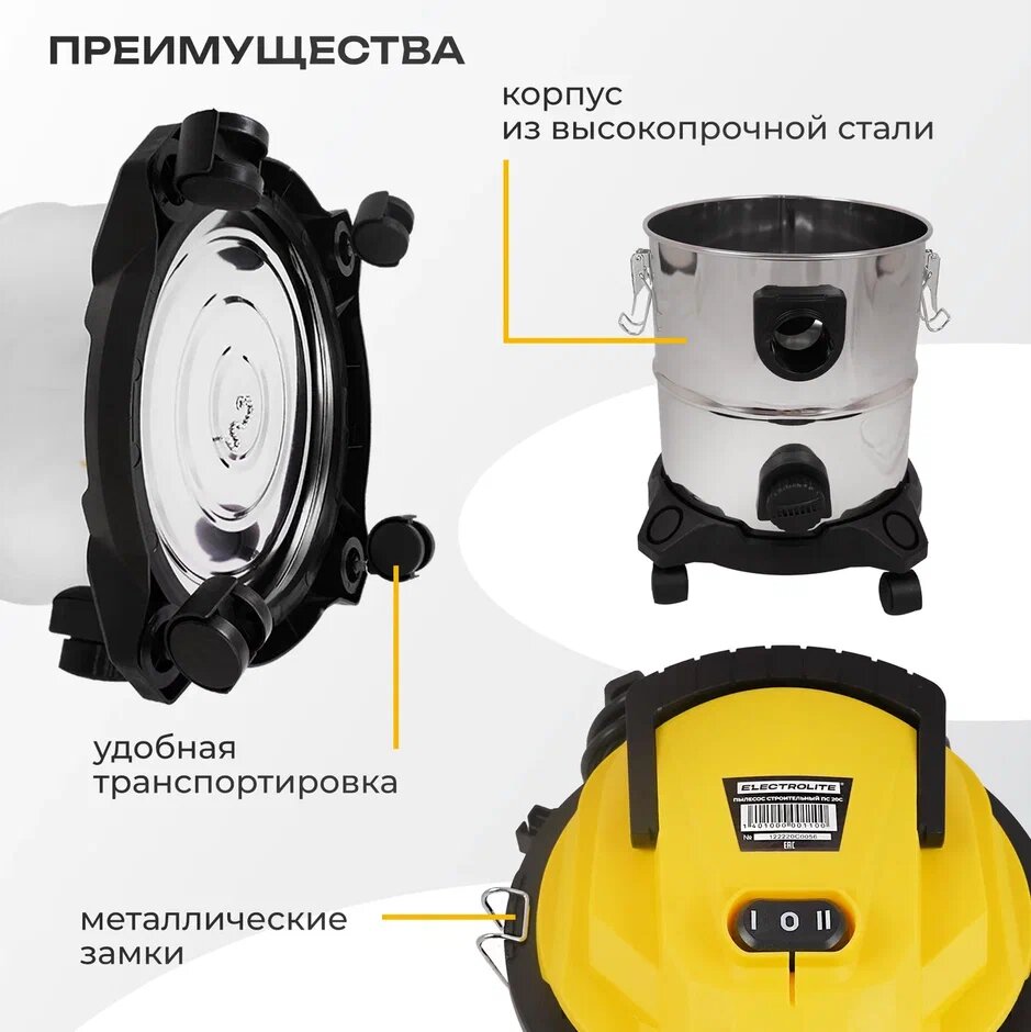 Пылесос строительный / промышленный ELECTROLITE ПС 20С ( 1500 Вт, 20 л, розетка для инструмента ) интересное: