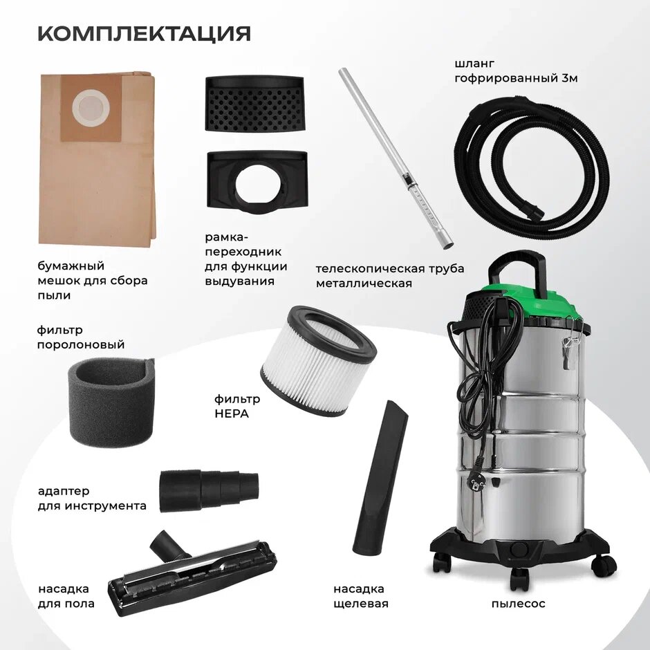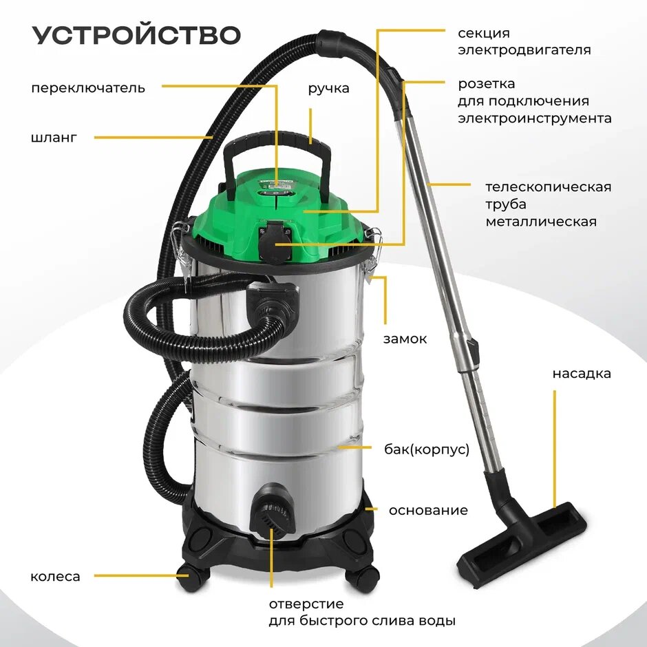 Пылесос строительный / промышленный ELECTROLITE ПС 30С ( 1500 Вт, 30 л, розетка для инструмента ) интересное:
