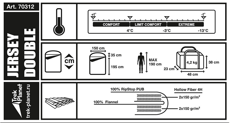 Двойной спальник Trek Planet Jersey Double для осенне-весеннего периода