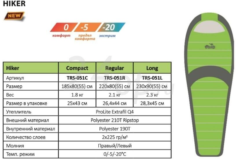 СохранитьTramp мешок спальный Hiker Compact / Левый интересное: