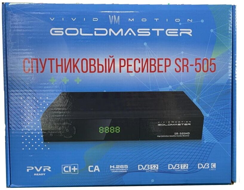 Ниже Вы можете прочитать отзывы на Комбинированный ресивер DVB-S2/T2/C с поддержкой модулей CI/CI+ Goldmaster SR-505HD, ознакомится с подробными характеристиками, посмотреть интересные обзоры и фотографии на Комбинированный ресивер DVB-S2/T2/C с поддержкой модулей CI/CI+ Goldmaster SR-505HD.