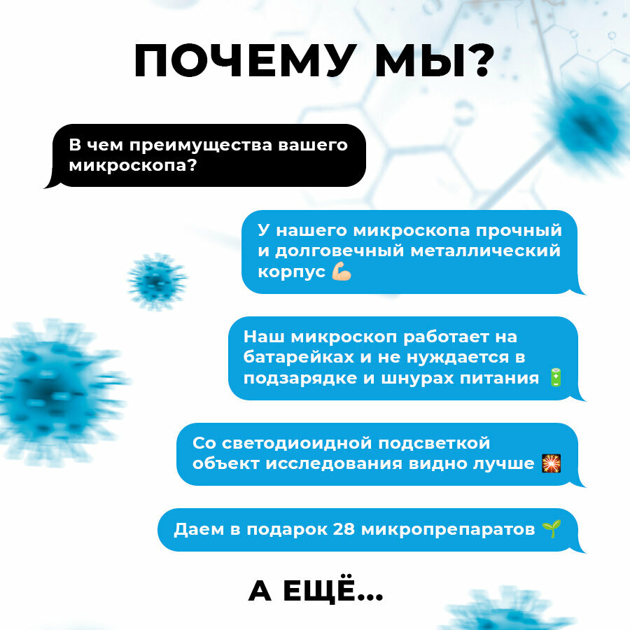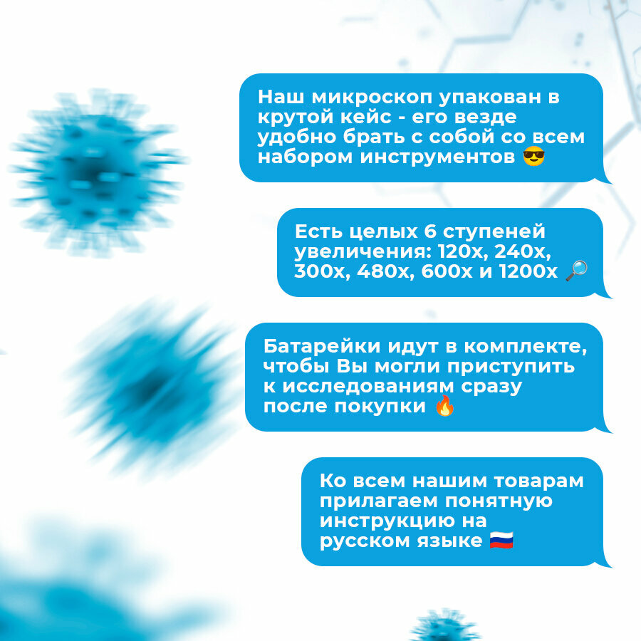 Микроскоп имеет высокое разрешение и позволяет рассмотреть детали на микроуровне, что делает его идеальным для изучения биологических объектов. Отличный способ расширить свои знания и получить ценный опыт.