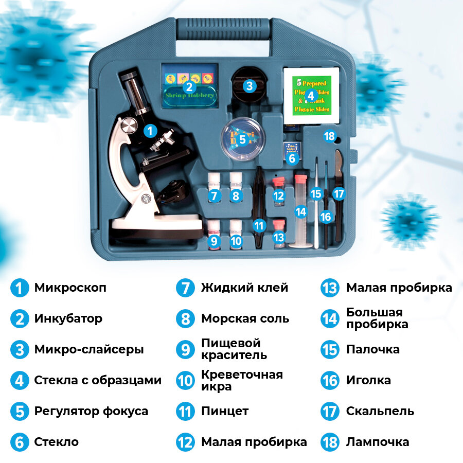 Набор позволяет дочке эффективно изучать микромир и наблюдать за процессами, которые происходят на микроуровне. Это особенно полезно, для при изучении биологии. Очень довольны.