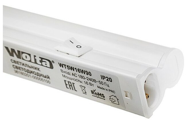 Wolta Светильник светодиодный 16 Вт, 6500К Холодный белый свет, IP20, 1120лм , линейный (полная сборка), 8743722 мм, WT5W16W90