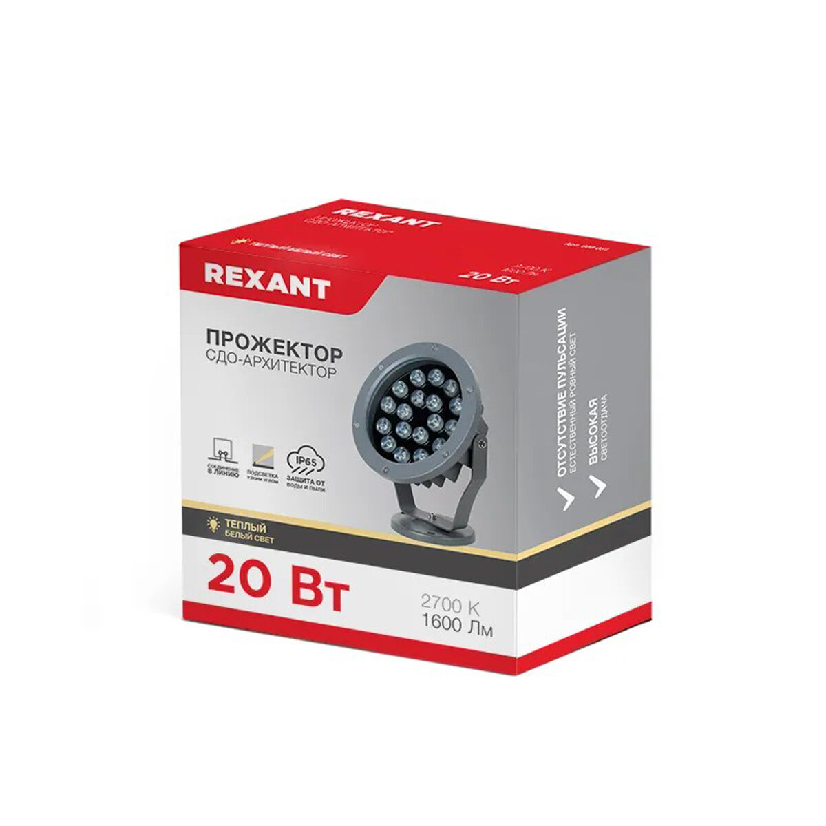 Прожектор светодиодный Rexant 20 Вт, 110-240 В, Ip65, 1600 Лм, 2700 K .