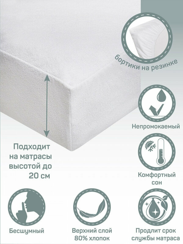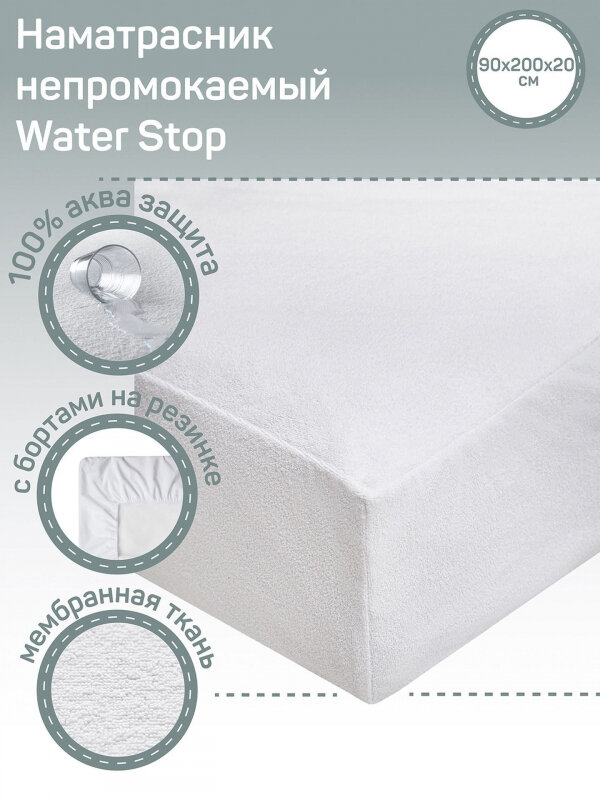 Наматрасник непромокаемый Water Stop с бортами на резинке 200х90 Белый