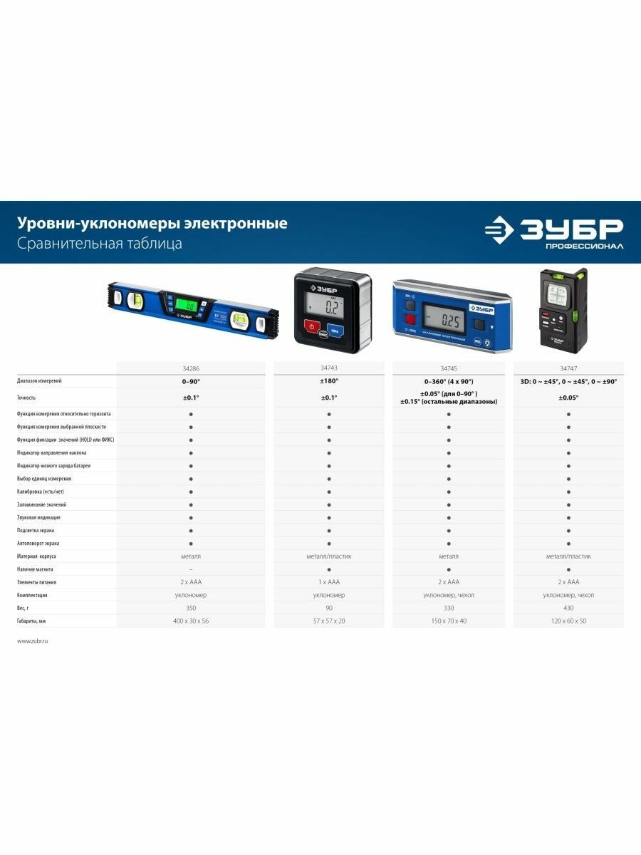 СохранитьЗУБР 400 мм, 0-90°, ±0,2°, уровень-уклономер, Профессионал (34286) интересное: