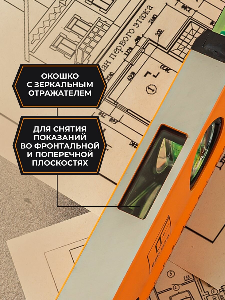 Уровень строительный алюминиевый 400 мм вихрь Усиленный 3 глазка (1 зеркальный) / уровень измерительный фрезерованный 73/11/4/9