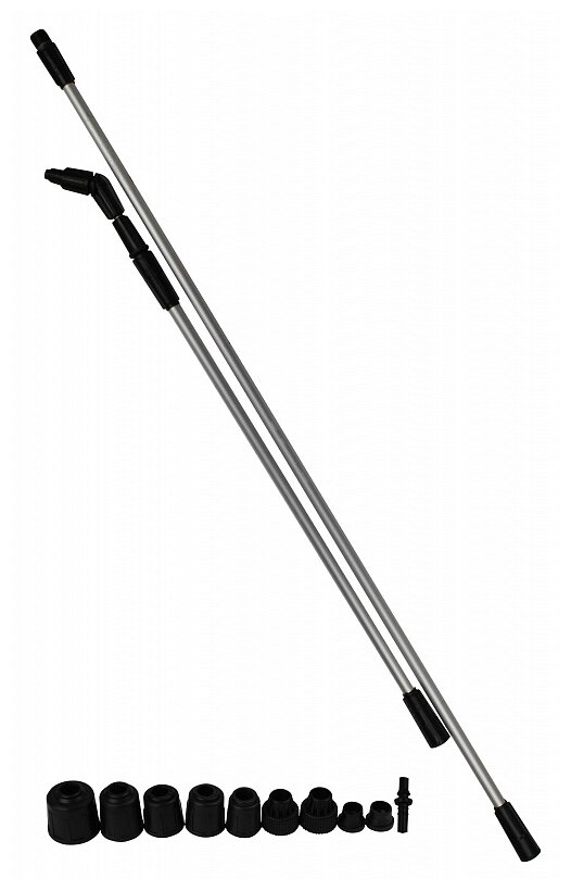 | Комплектация | телескопическая штанга (до 3,); пластиковая ручка; силиконовый шланг 1,6м; комплект переходников |