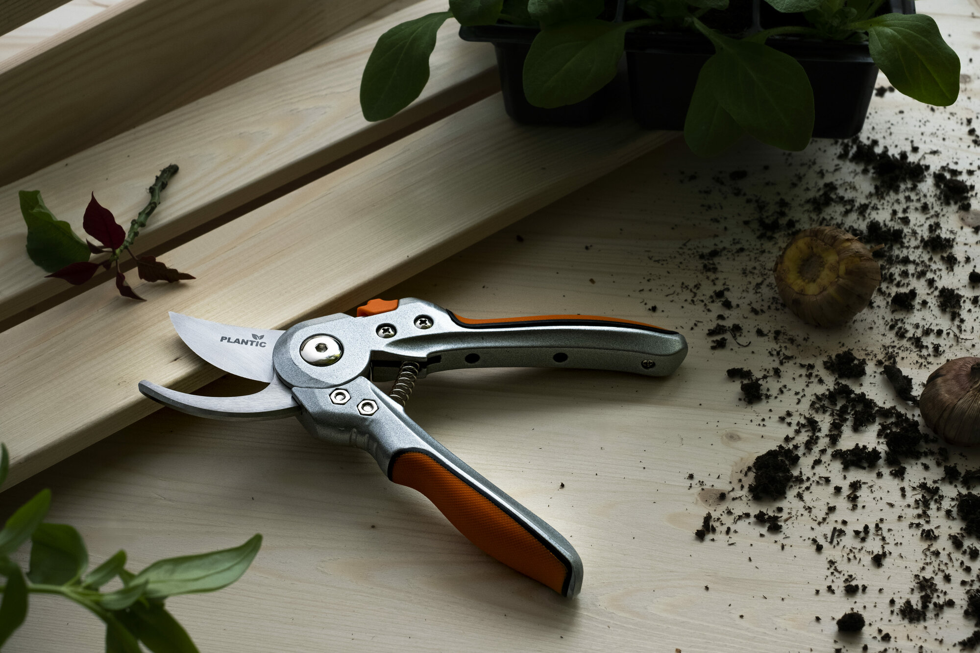 Секатор плоскостной Plantic P202 25202-01, 21 см., лезвия из нержавеющей стали, ручка из алюминиевого сплава