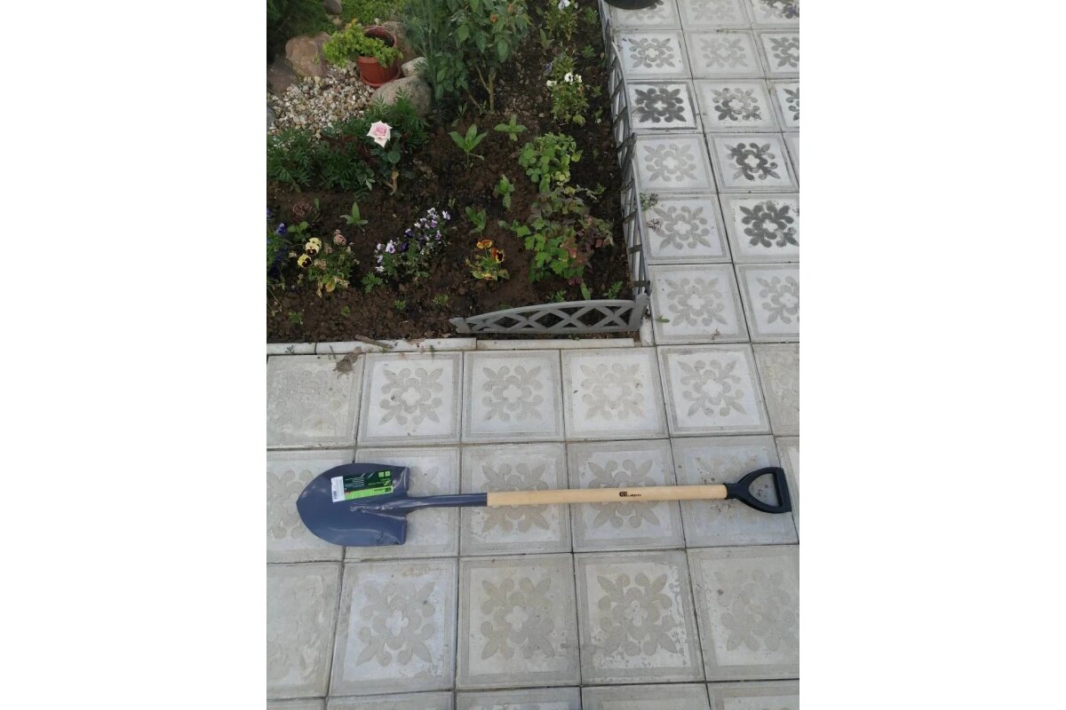 | Минусы: | Плохая подгонка черенка. С завода не заточена. Изгиб лопаты не очень выраженный, среднее между совковой и штыковой (но это не недостаток а особенность) ей можно и погрузку-разгрузку, я картошку копал, хотя для картошки пожалуй чуть тяжеловата. По весу она не легкая не тяжелая, но для женщин думаю тяжеловата. Что касается умеренного изгиба, то я планирую взять еще такую же лопату и отдельно докупить не прямую а изогнутую ручку чтобы получить полноценную совковую. Производителю пожелание обратить внимание на подгонку черенка. Добавляю через год. Она не подходит для копки гряд! Она именно для погрузки-разгрузки. У этой лопаты очень своеобразная форма штыка, она как бы чашеобразная, блюдичком. Именно не цилиндрическая а ковшом по этому она хотя и реально толстая, но если вы будете тупо ее использовать как штыковую и со всей дури давить на заступ ногой то она в конце концов погнется как здесь есть на одной фотке, это не недостаток лопаты это ее важная и принципиальная особенность. И заступ, куда упирается нога у нее выгнут не на копающего, как у обычной штыковой лопаты а наоборот- от капающего, это с одной стороны увеличивает объем забираемого материала, а с другой способствует "складыванию" штыка при использовании не по назначению. Она входит в грунт не прямо как обычная штыковая, а как ковш по окружности. И не поленитесь ее заточить, она широкая у нее большая длинна кромки плюс не прямой заход в грунт, а если она у вас еще и не заточена то при земляных работах очень вероятно что погнете. И еще раз вообще то она называется лопата для сыпучих грузов, вот кстати для сыпучих грузов ее можно и не затачивать особенно например для гравия): |