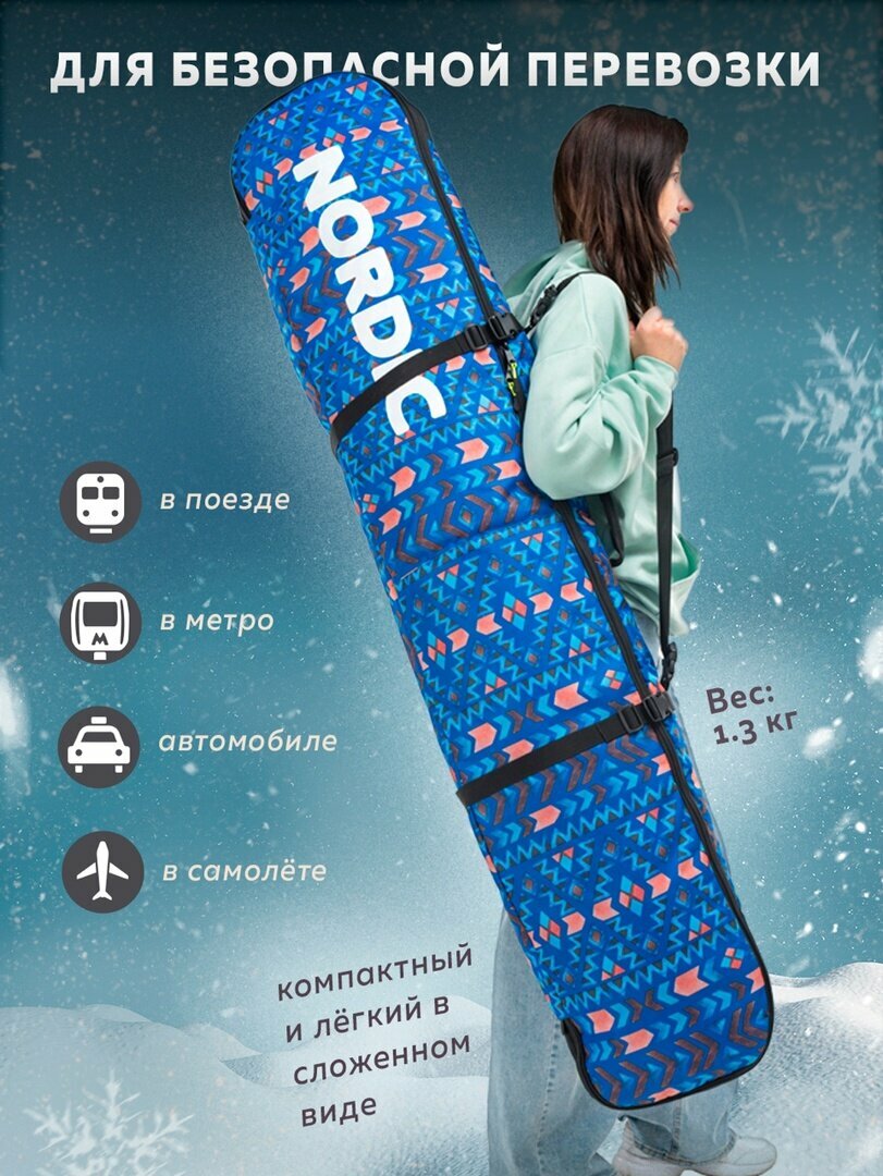 Чехол-переноска для хранения сноуборда, кофр для перевозки горных лыж и снаряжения в поезде, самолете Nordic SB10, 165*30*14 см синий навигатор