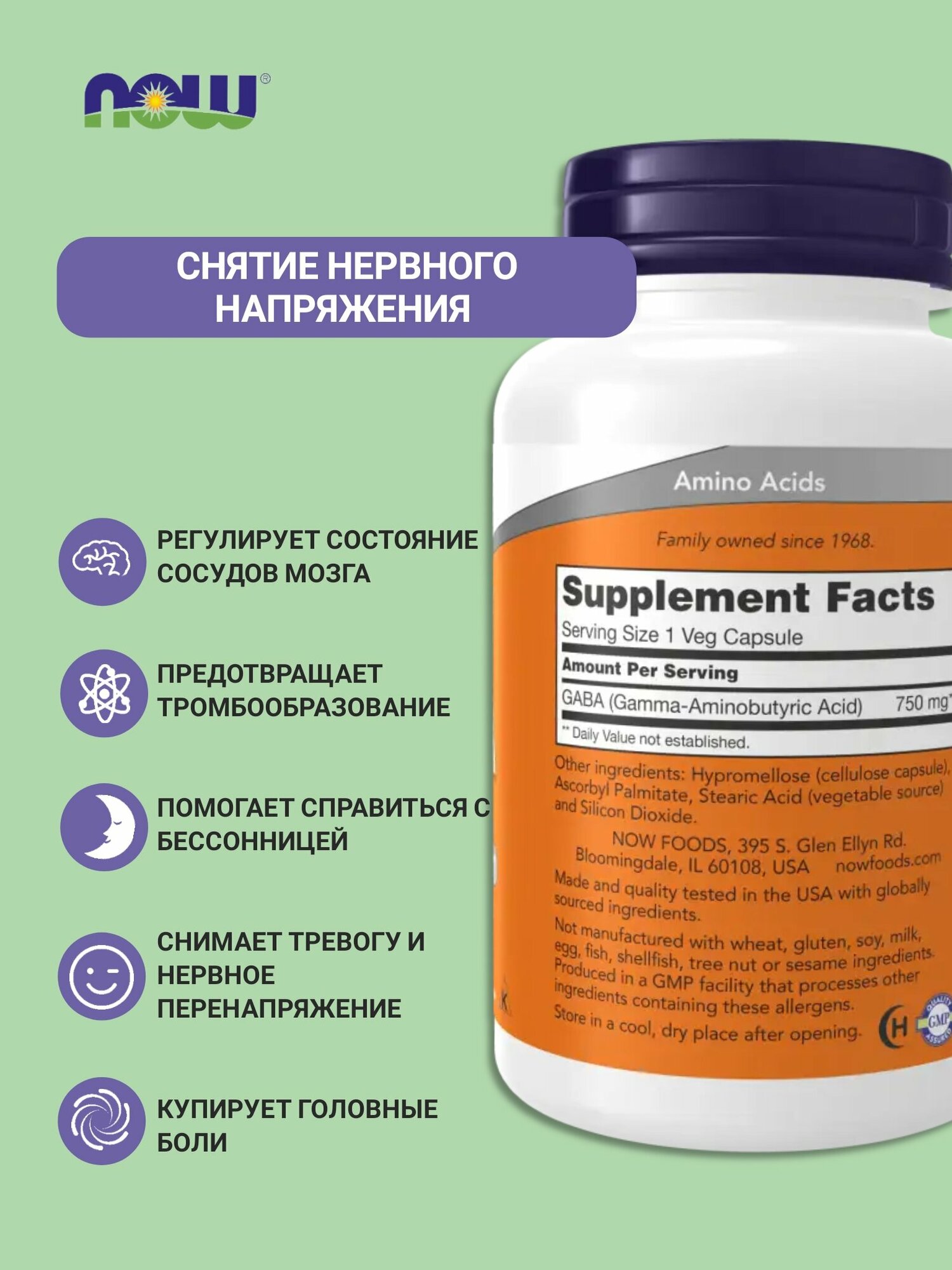 Аминокислота NOW GABA 750 mg (100 капсул)