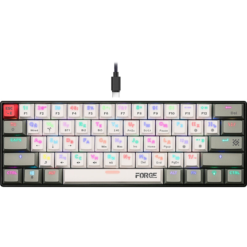 Беспроводная механическая клавиатура Defender Forge, RGB подсветка, Bluetooth, радиоканал 2.4GHz, 61 кнопка (60%)