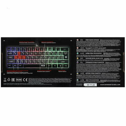 Клавиатура Defender игровая Red GK-116 RU,радужная подсветка, 61кнопка (45117)
