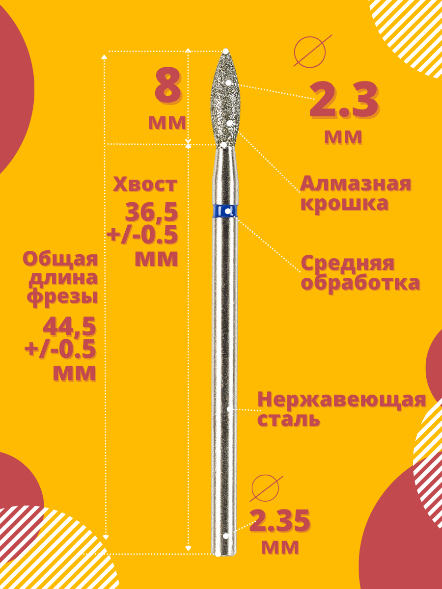 Фрезы для маникюра Astial "Пламя" алмазная, синяя, средняя, 5 штук, 806.104.243.524.023