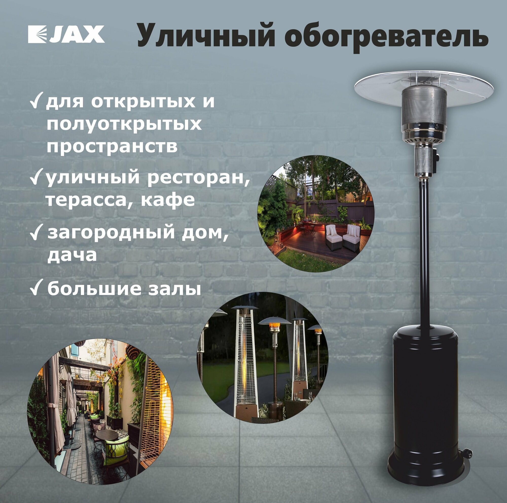 Газовый уличный обогреватель Jax JOGH-13000 PNB 14 кВт, 20 м2 интересное: