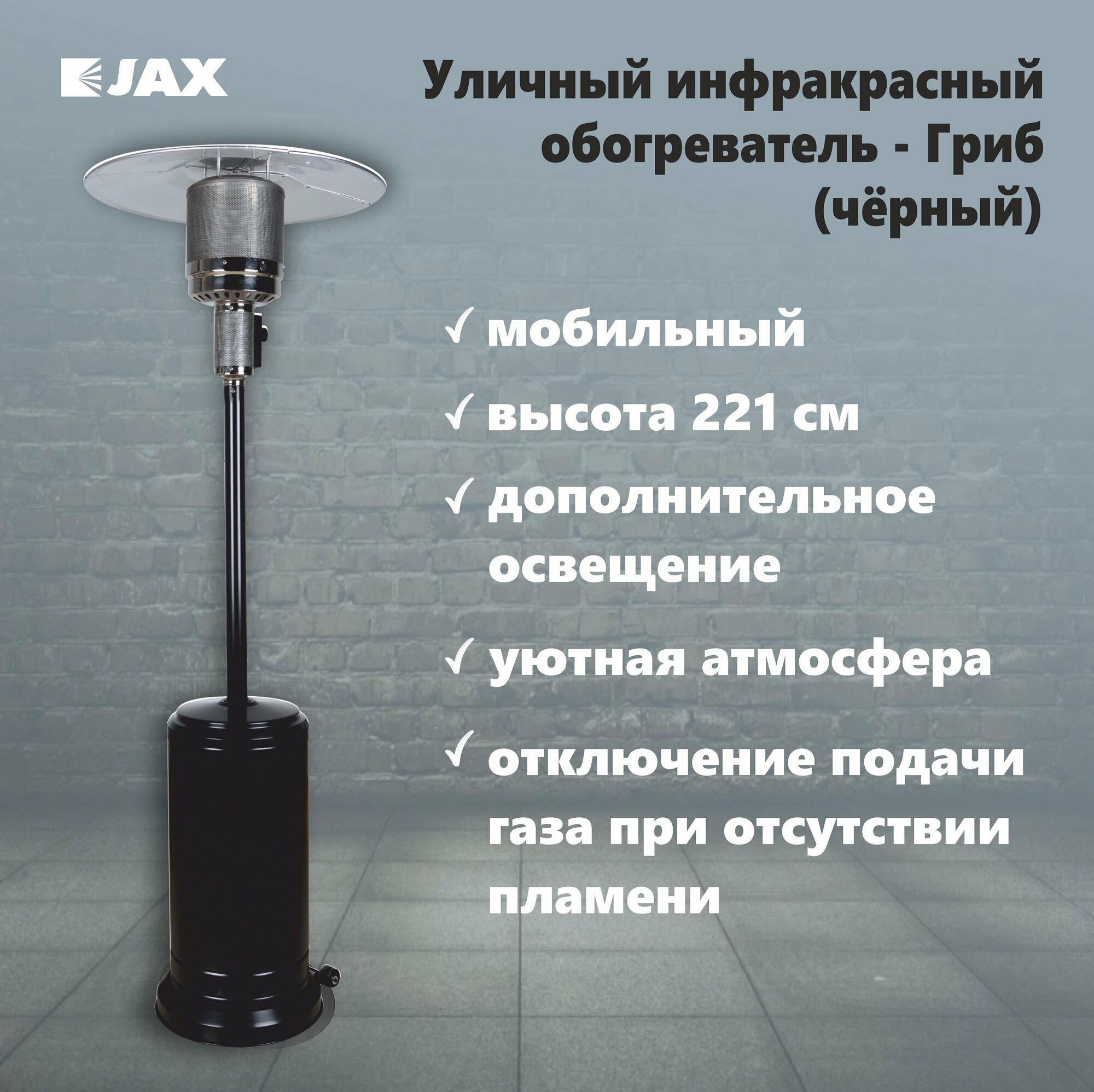 Уличный газовый обогреватель JAX JOGH-13000 PNB инфракрасный, с видеообзором, черный