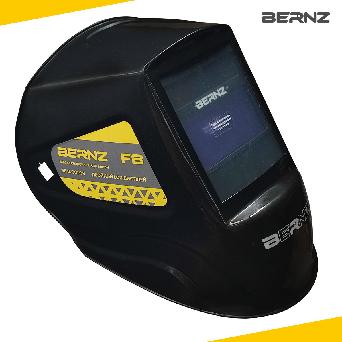 Маска сварщика BERNZ Ф8 черная, Хамелеон 100х50мм, DIN 4/9-13, внешняя регулировка, в коробке интересное: