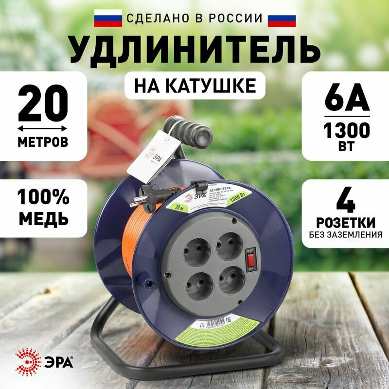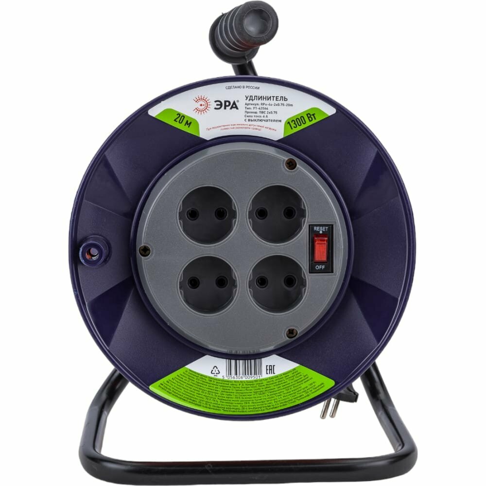 Удлинитель на катушке ЭРА 4 гнезда 20 м ПВС 2×0.75 кв. мм 6 А 1300 Вт IP 20