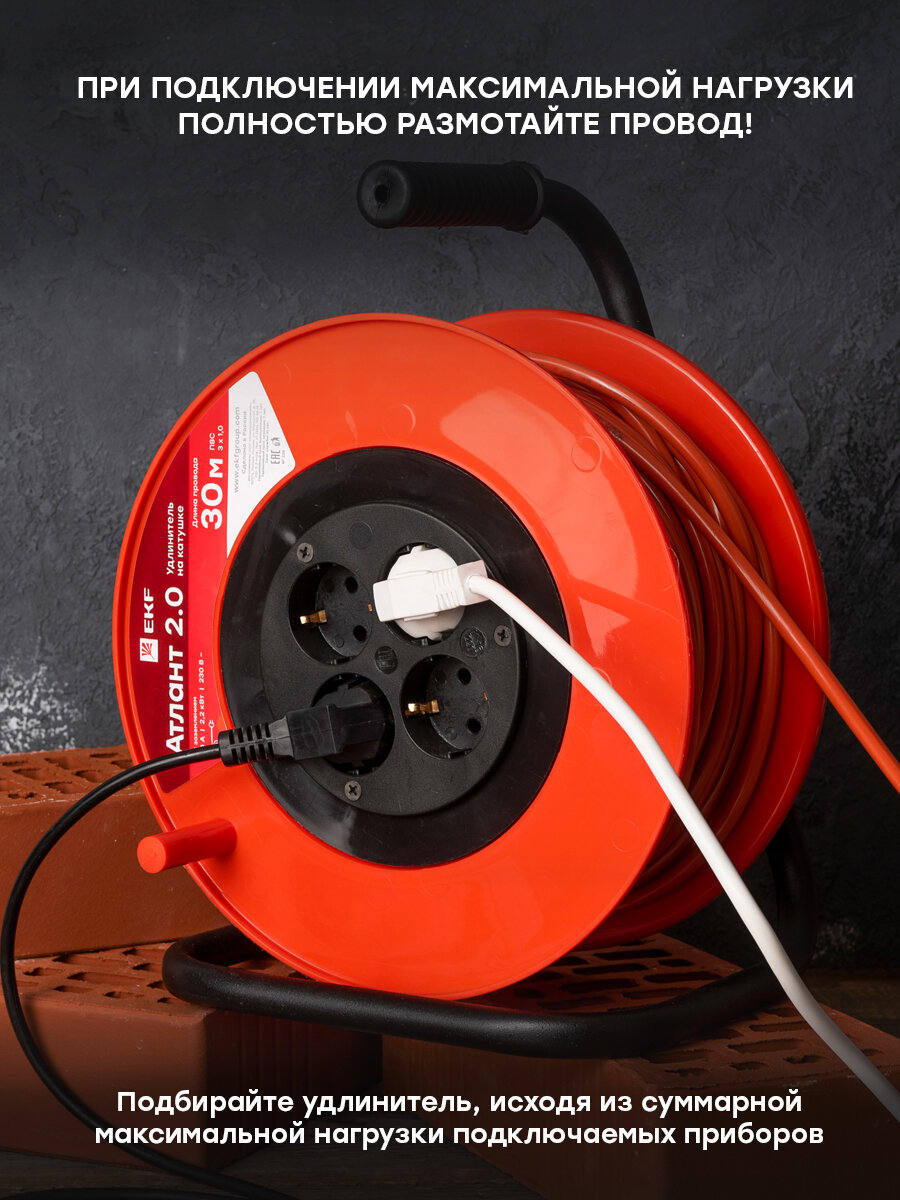 Удлинитель электрический EKF на катушке 30 метров 4 розетки с заземлением EKF ''Атлант 2.0'' (UKA02-10-310-4-30)