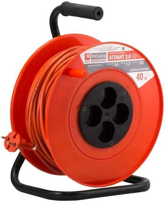 Удлинитель на катушке 4х30м с заземл. 10А IP20 Атлант 2.0 2.2кВт ПВС 3х1 PROxima EKF UKA02-10-310-4-30