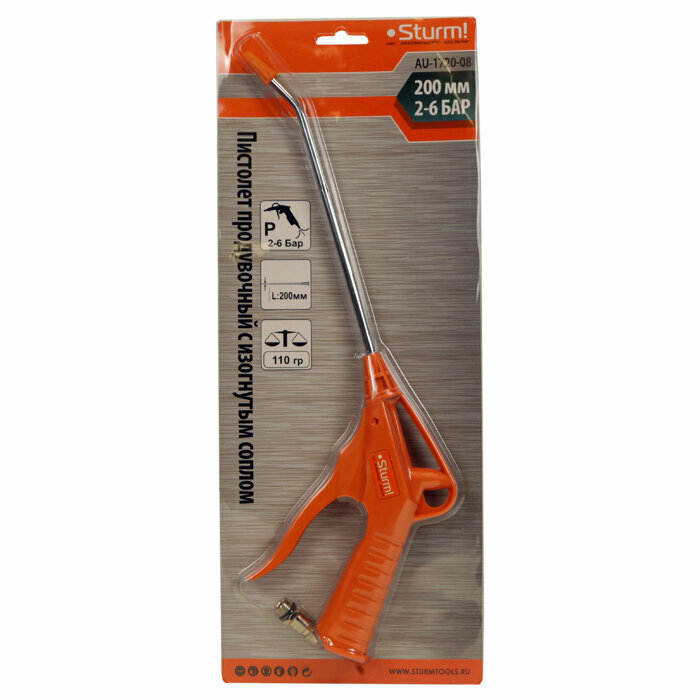 Пистолет продувочный Sturm AU-1720-08 /2-6 бар, изогнутое сопло ,d=3,8мм/ интересное: