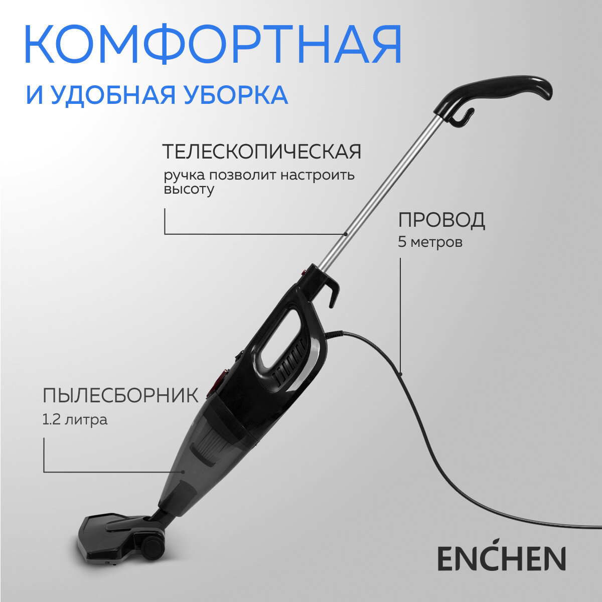 Вертикальный пылесос для дома 2 в 1 Enchen Vacuum Cleaner V1 черный, вертикальная парковка, сетевой шнур 5 метров