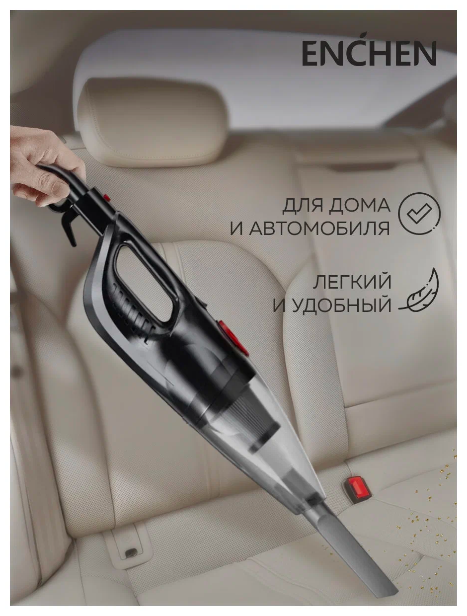 Ручной вертикальный пылесос для дома Enchen Vacuum Cleaner V1 черный DX115C/DX118C / компактный для мебели, с контейнером / без мешка