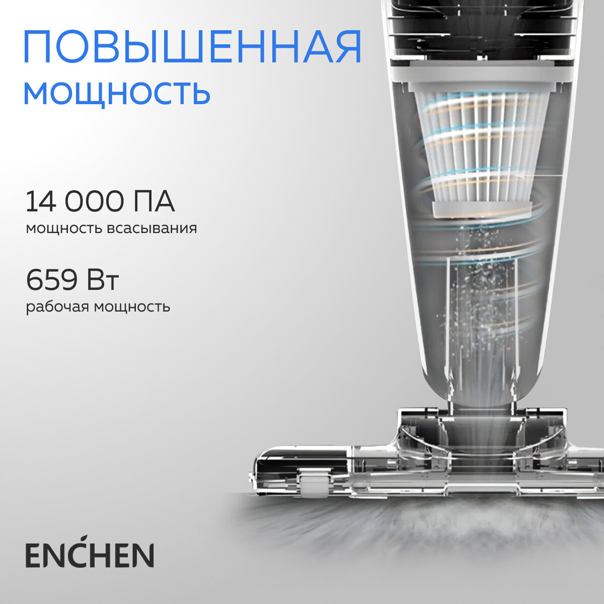 Вертикальный пылесос для дома 2 в 1 Enchen Vacuum Cleaner V1 белый, вертикальная парковка, сетевой шнур 5 метров