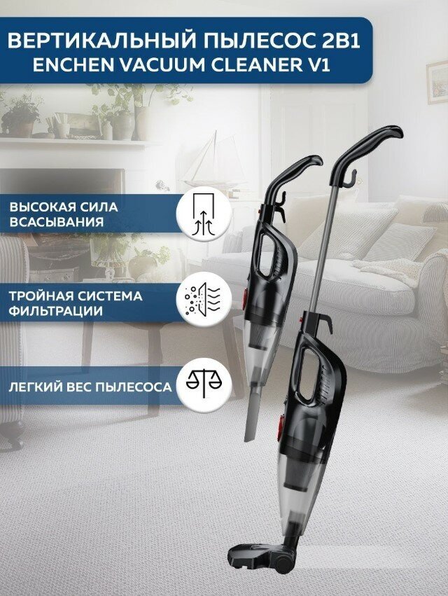 Вертикальный пылесос для дома 2 в 1 Enchen Vacuum Cleaner V1 черный + дополнительный фильтр в комплекте