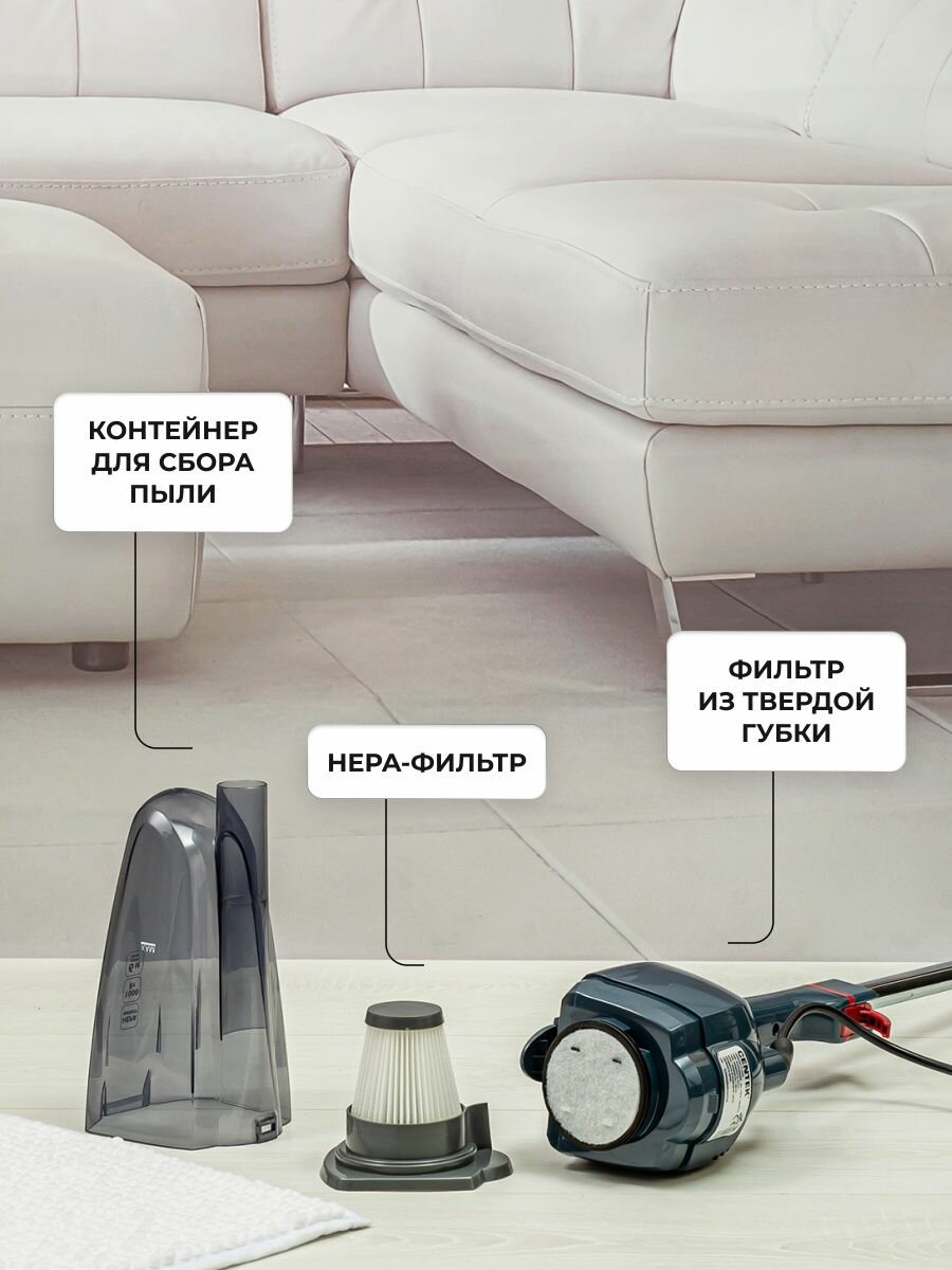 | Минусы: | после каждой уборки лучше убирать мусор,т.к. фильтр забивается пылью |