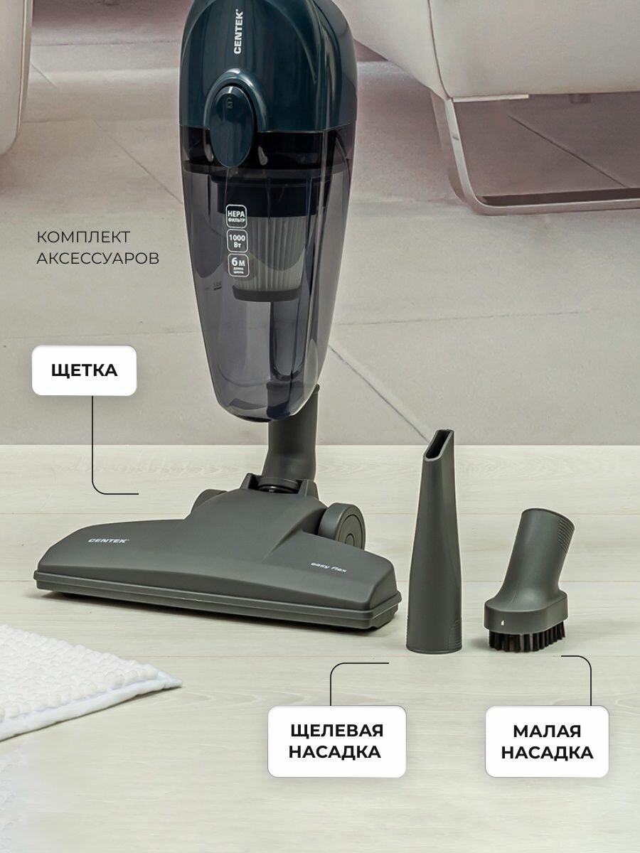 Пылесос вертикальный Centek CT-2565 (синий) 1000/200Вт, 1.2л, низкий ур шума, HEPA, дл. шнура 6 м.