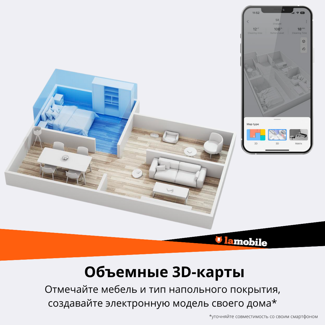 | Отзыв: | классный умный робот. убирает в доме отлично. С приложения удобно управлять, строить стены, задать мощность и тд. стоит своих денег |