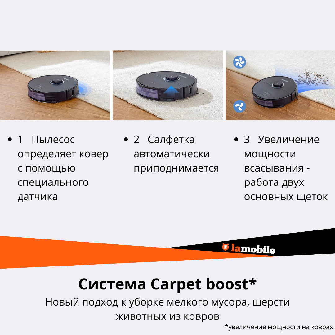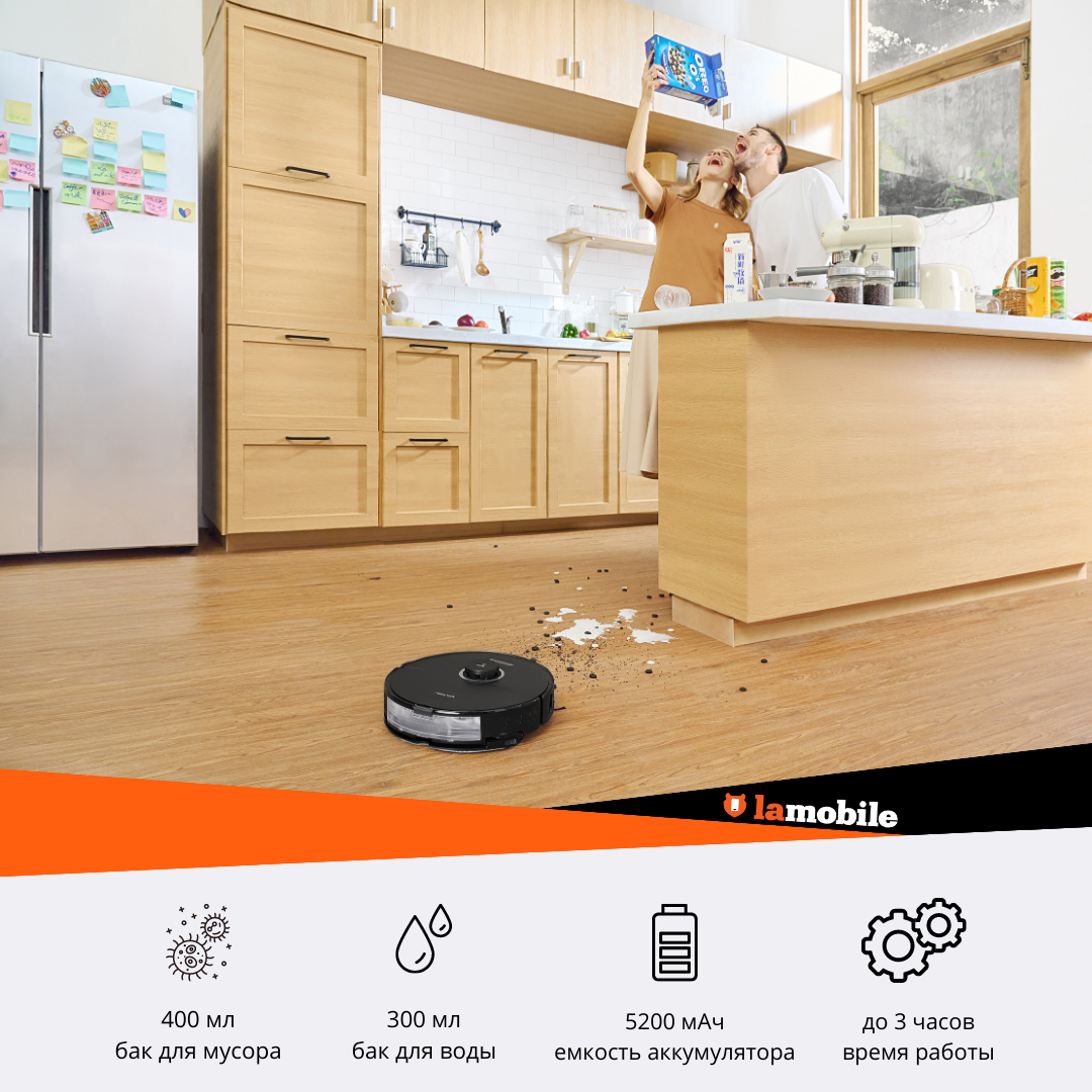 | Плюсы: | Лучший пылесос, быстро и четко строит карту, ловко перешагивает препятствия, отлично качественно моет любые поверхности, заряда хватает на большие помещения (более 130 квадратов на одном заряде хватает) |