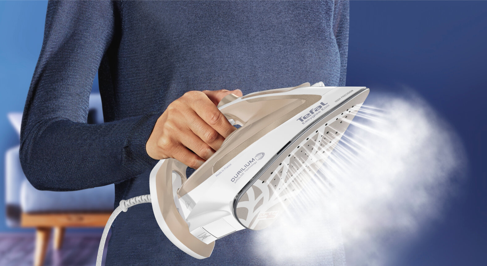 Паровой утюг Tefal Easygliss Eco FV5780E1, светло-бронзовый, мощность 2800 Вт, паровой удар 240 г/мин, подошва Durilium Airglide, противокапельная система