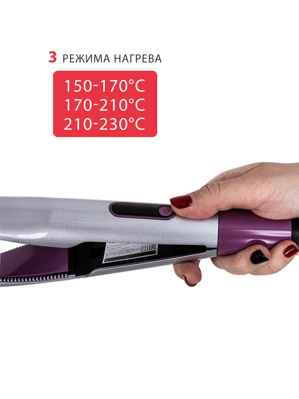 | Плюсы: | отлично нагревается до 230'. Волосы не электризует и хорошо выглаживает. |