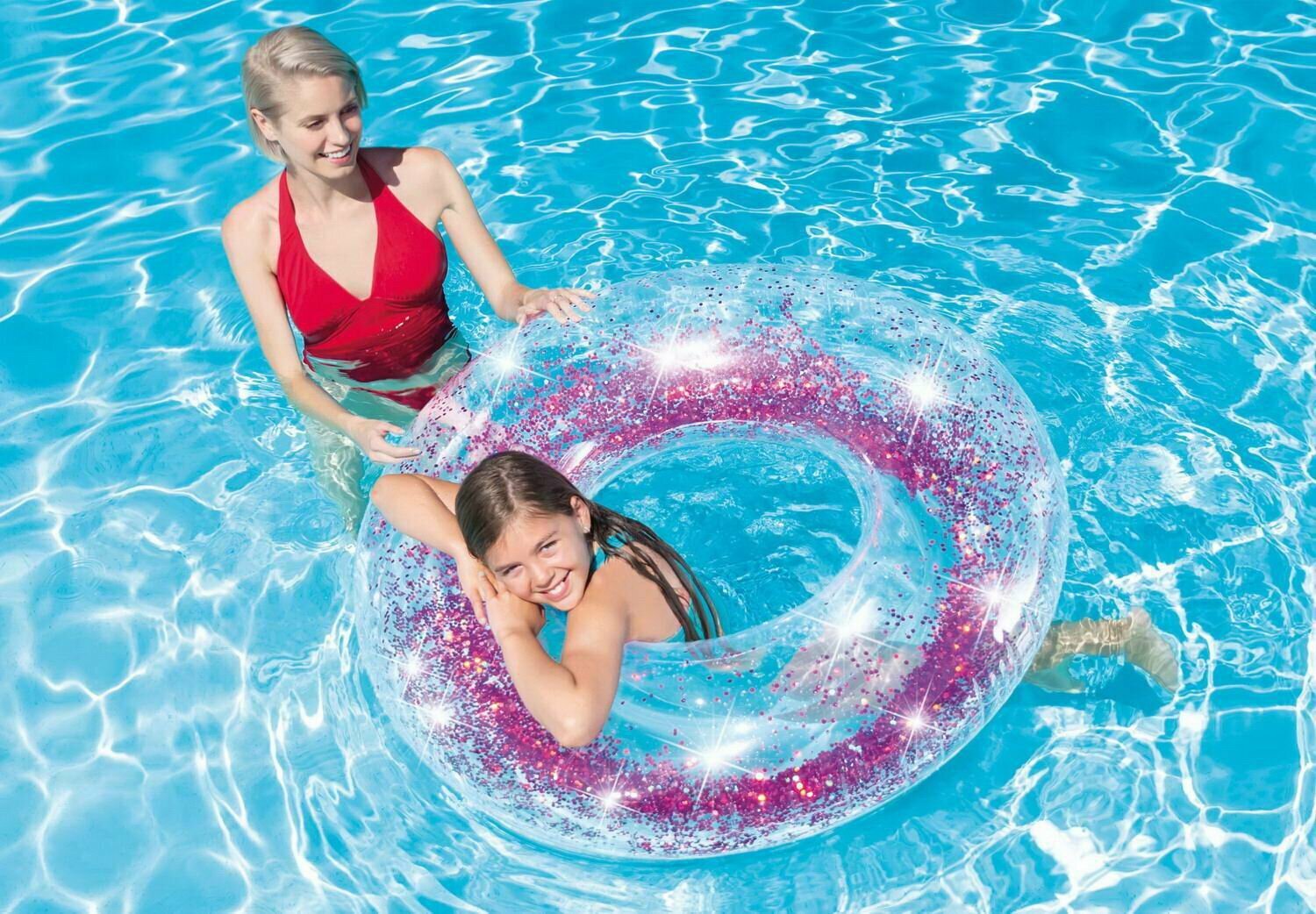 Круг надувной INTEX TRANSPARENT GLITTER розовый с блестками 9+ int56274NP/розовый интересное: