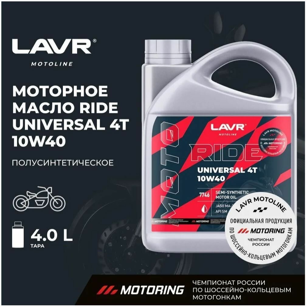 Моторное масло LAVR MOTO RIDE UNIVERSAL 4Т 10W-40 SM 4 л (Ln7746)
