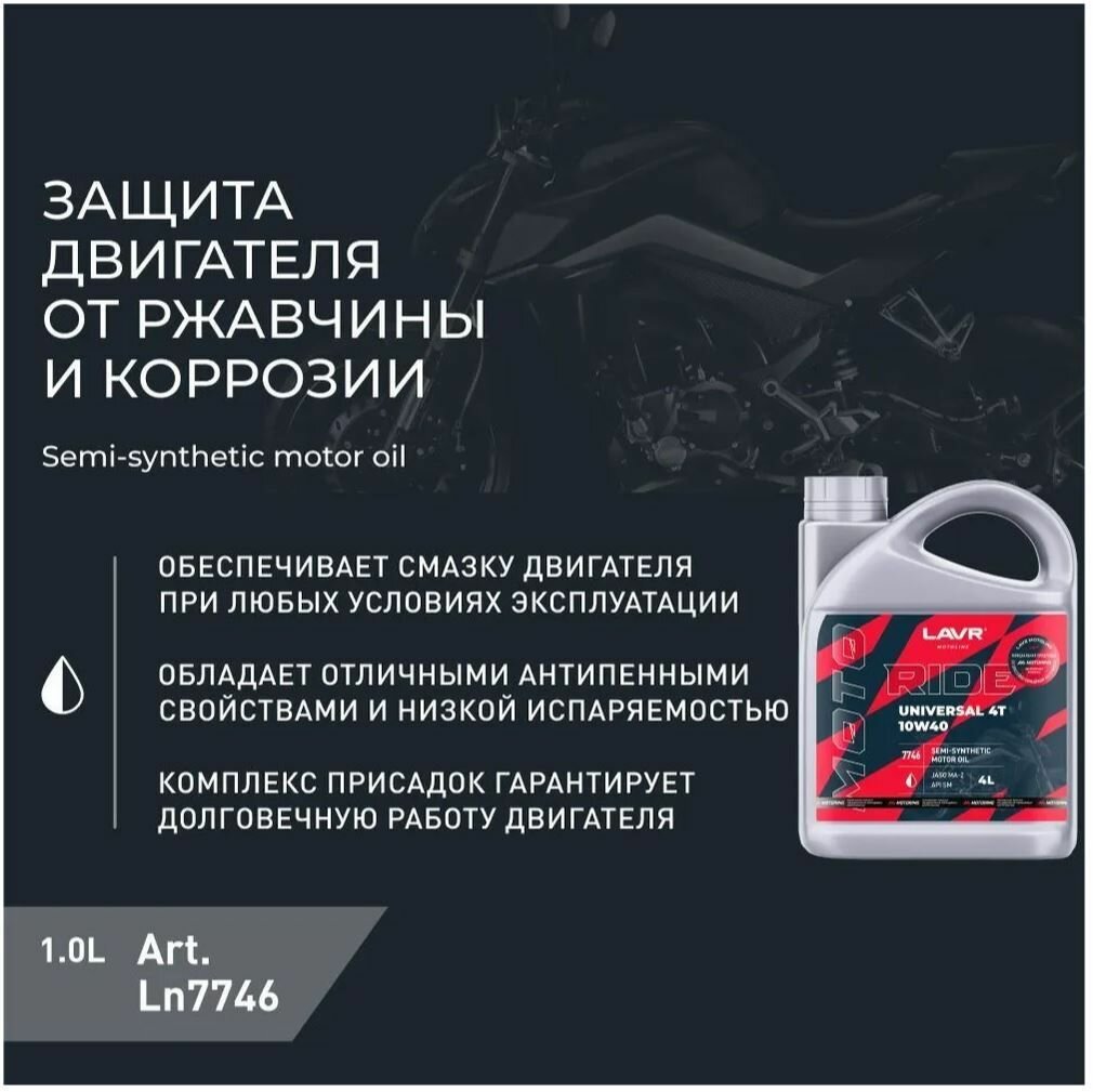 Масло Моторное Lavr 7746 Moto Ride Universal 4T 10W40 Sm 4Л П/Синт LAVR арт. LN7746